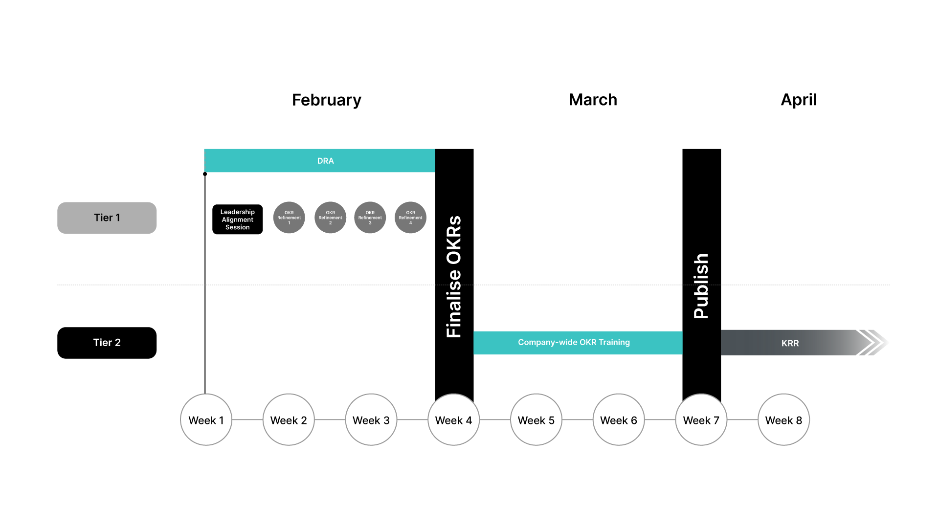 In this project, I was responsible for creating graphic assets and data visualisations for OKR (Objectives and Key Results) calendars and charts. This work was critical in helping the company track and achieve its strategic goals.