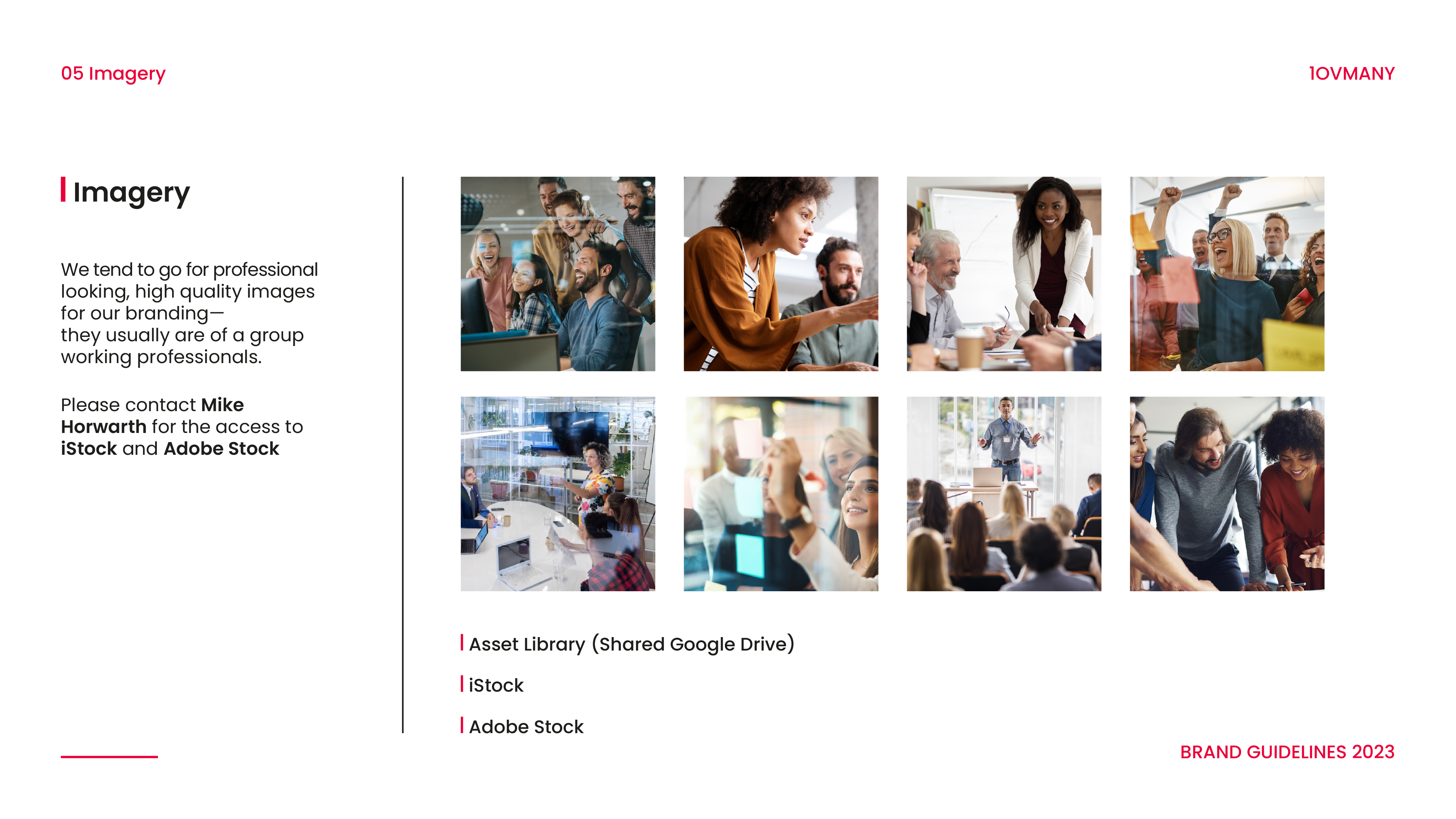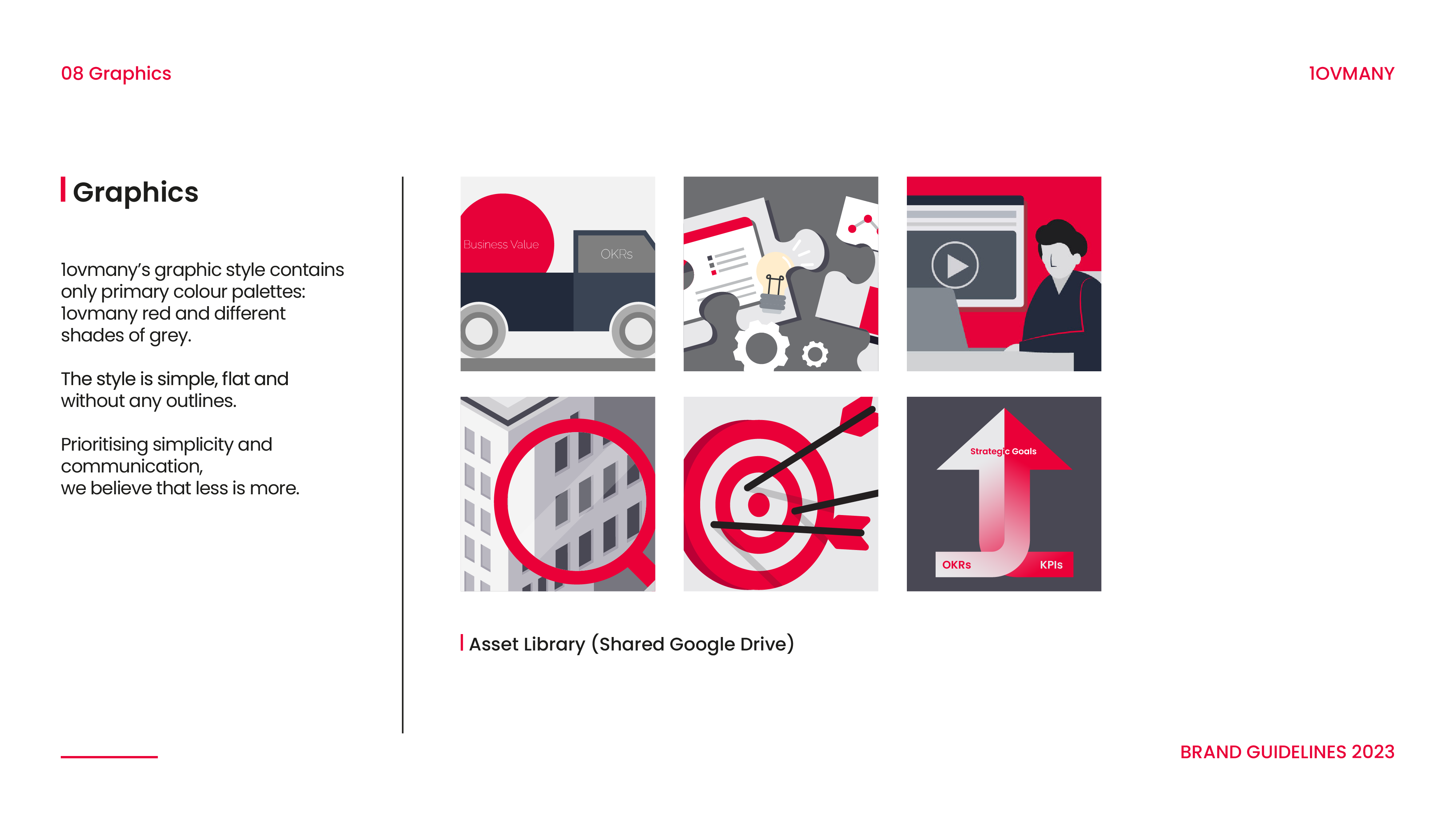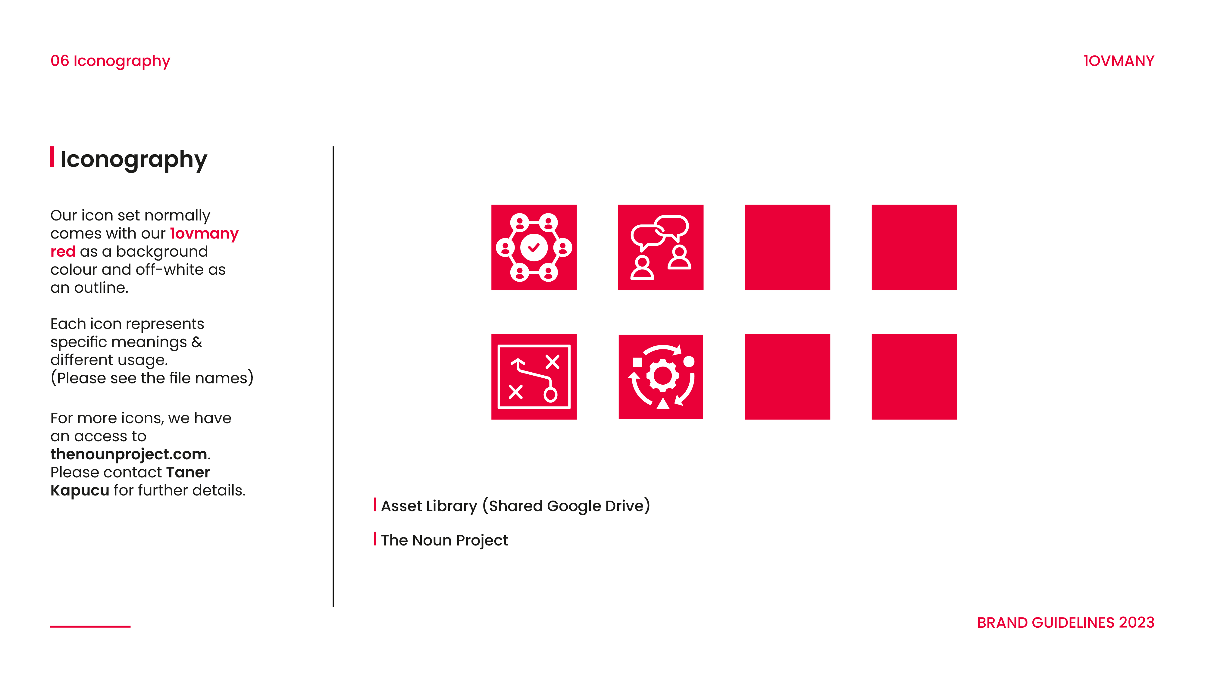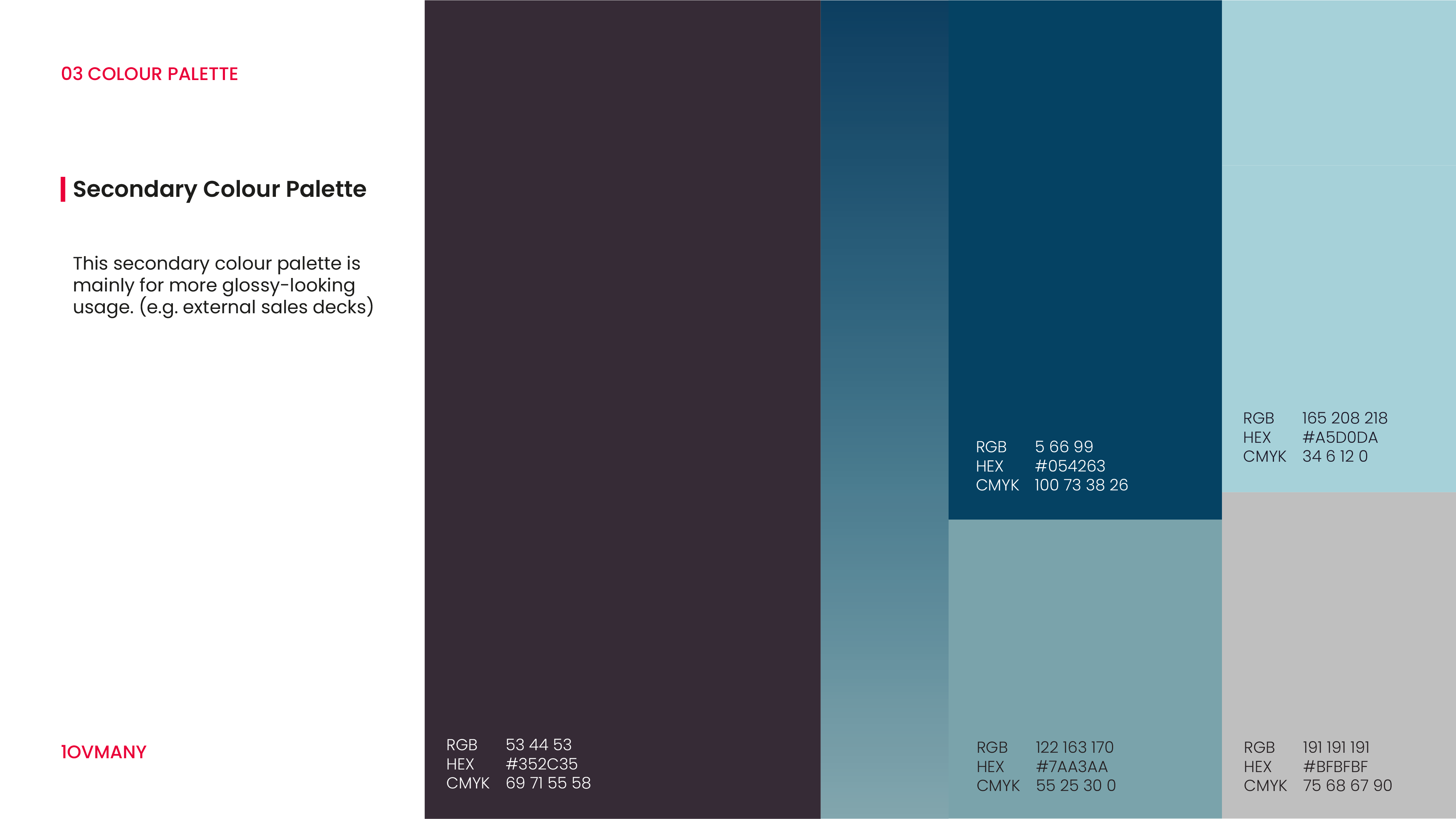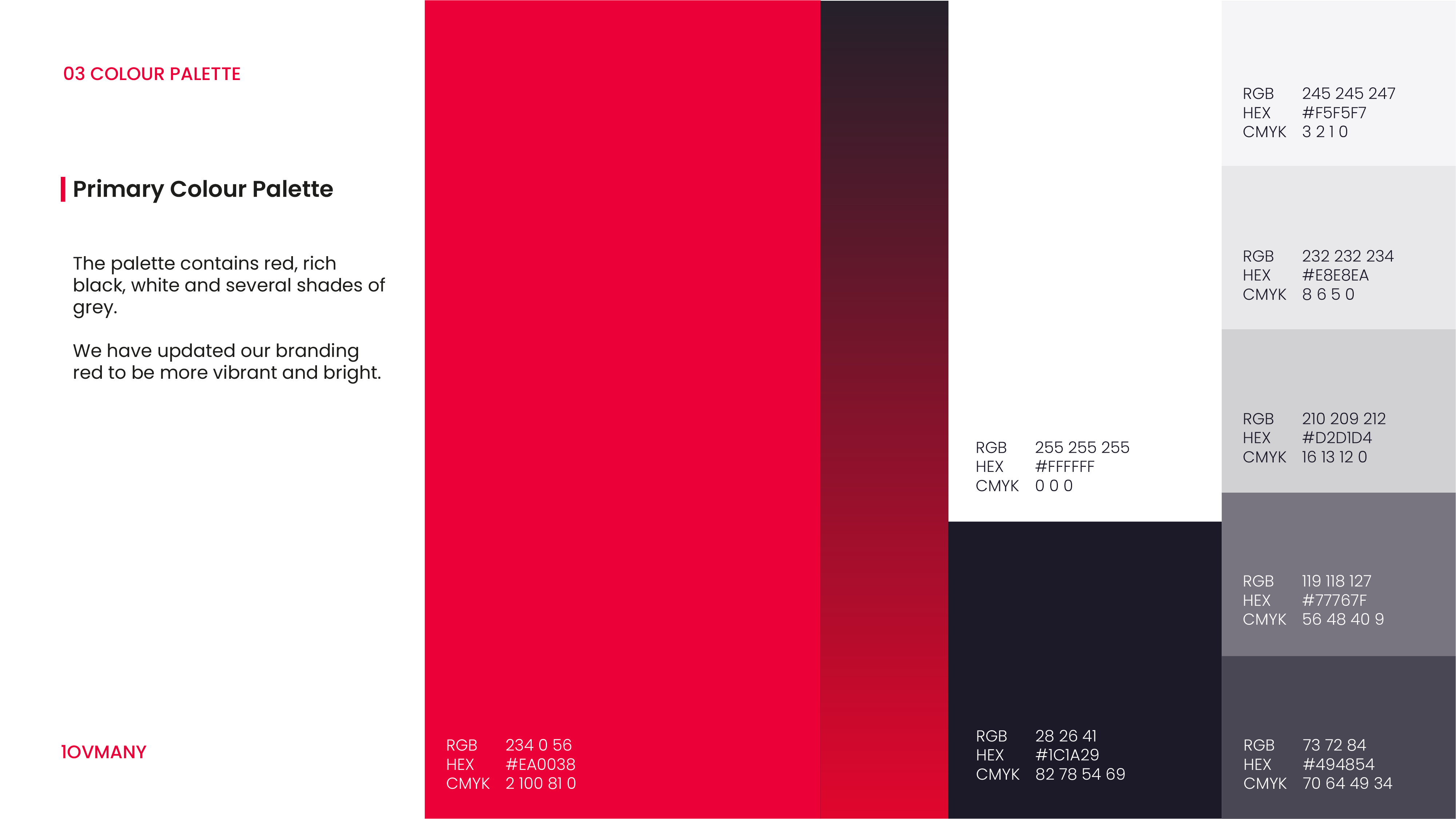 I developed guidelines covering colours, fonts, images, and tone to ensure consistency across all materials. During my time at 1ovmany, I regularly updated these guidelines to keep up with changing trends and company needs.