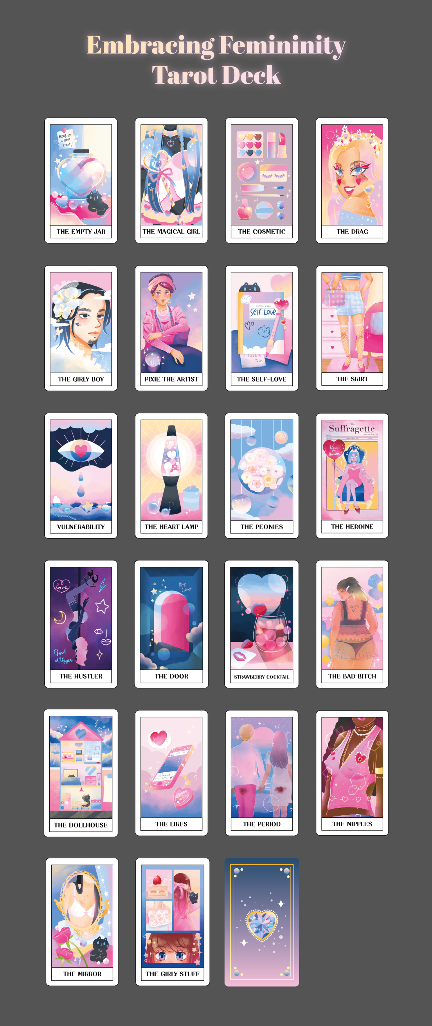 Inspired by the famous female artist Pixie, who illustrated the original Major Arcana, this deck offers a creative way to explore feminist messages through familiar tarot symbolism.I’m creating a 22-card Major Arcana tarot deck themed around feminist ideology. Each card connects a traditional meaning with a relevant feminist message or icon. A booklet with descriptions of each card will accompany the deck.