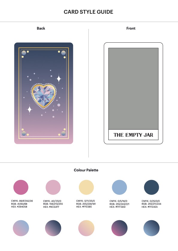 This is a 22-card Major Arcana tarot deck themed around feminist ideology. Each card connects a traditional meaning with a relevant feminist message or icon. A booklet with descriptions of each card will accompany the deck.