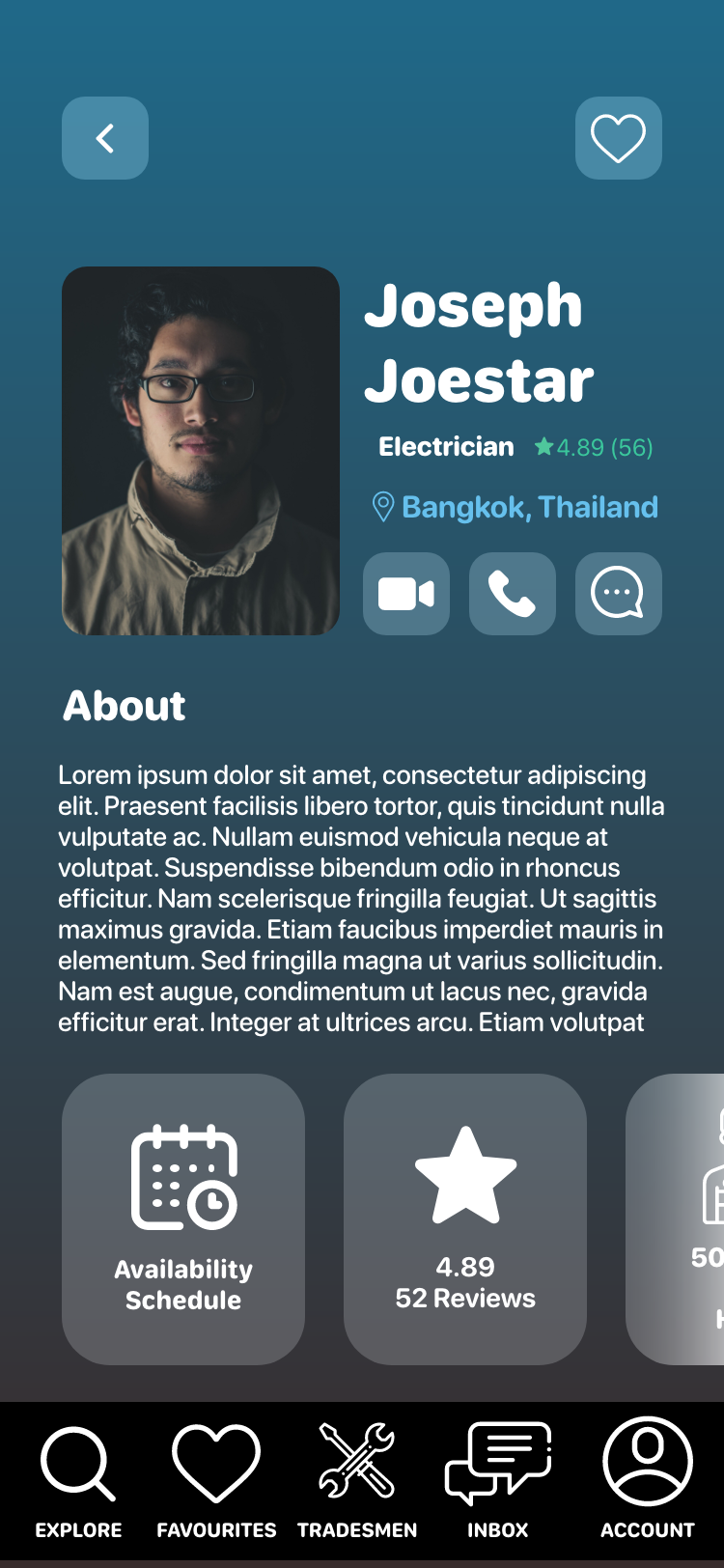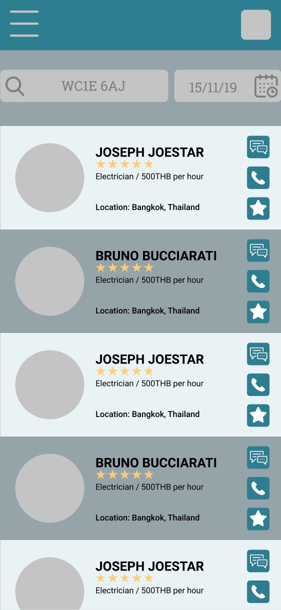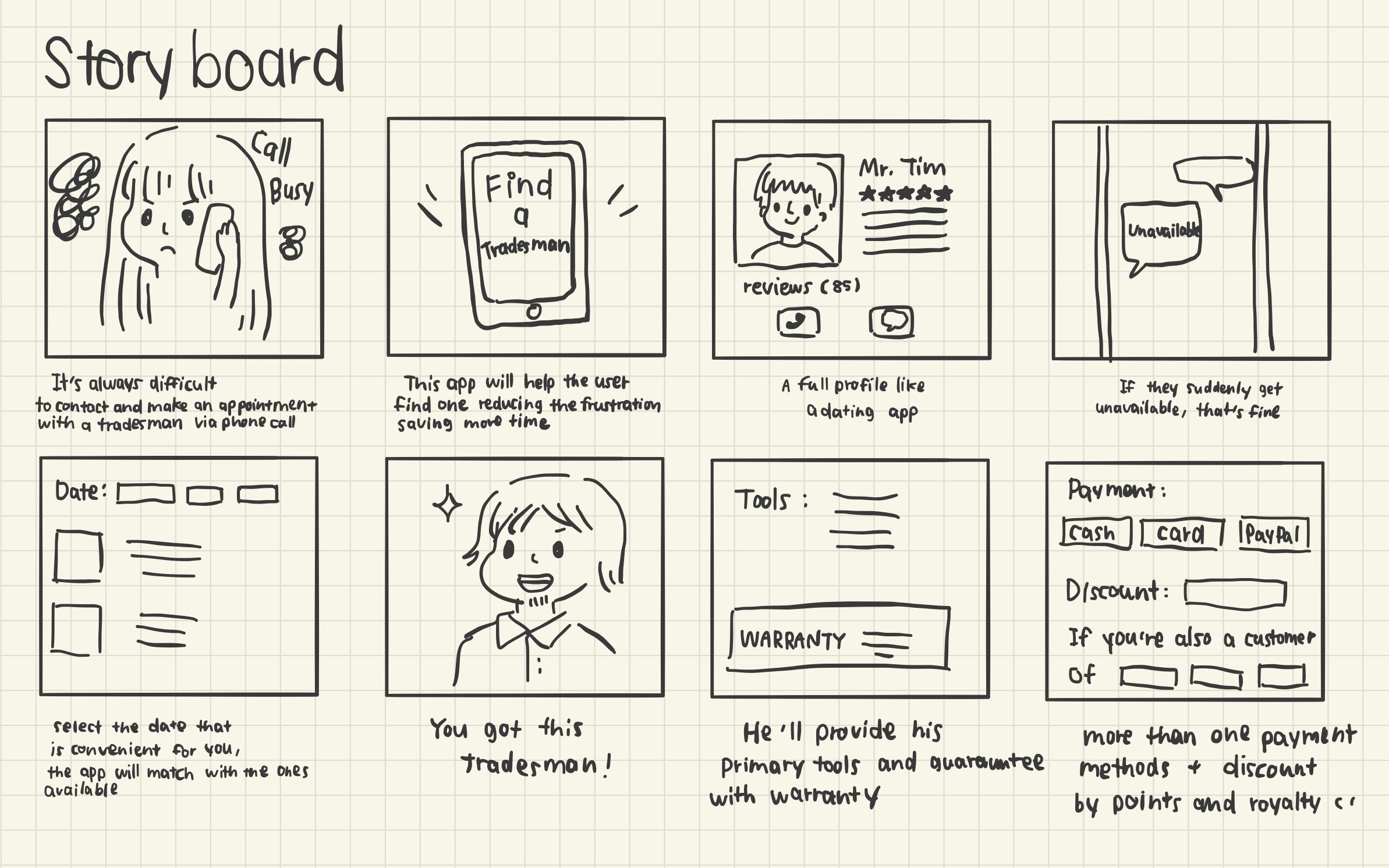 The “Find a Tradesman” application design provides users with a quick and easy way to locate a wide range of tradesmen directly from their mobile devices. This project originated during a UX Design short course at UAL: London College of Communication.