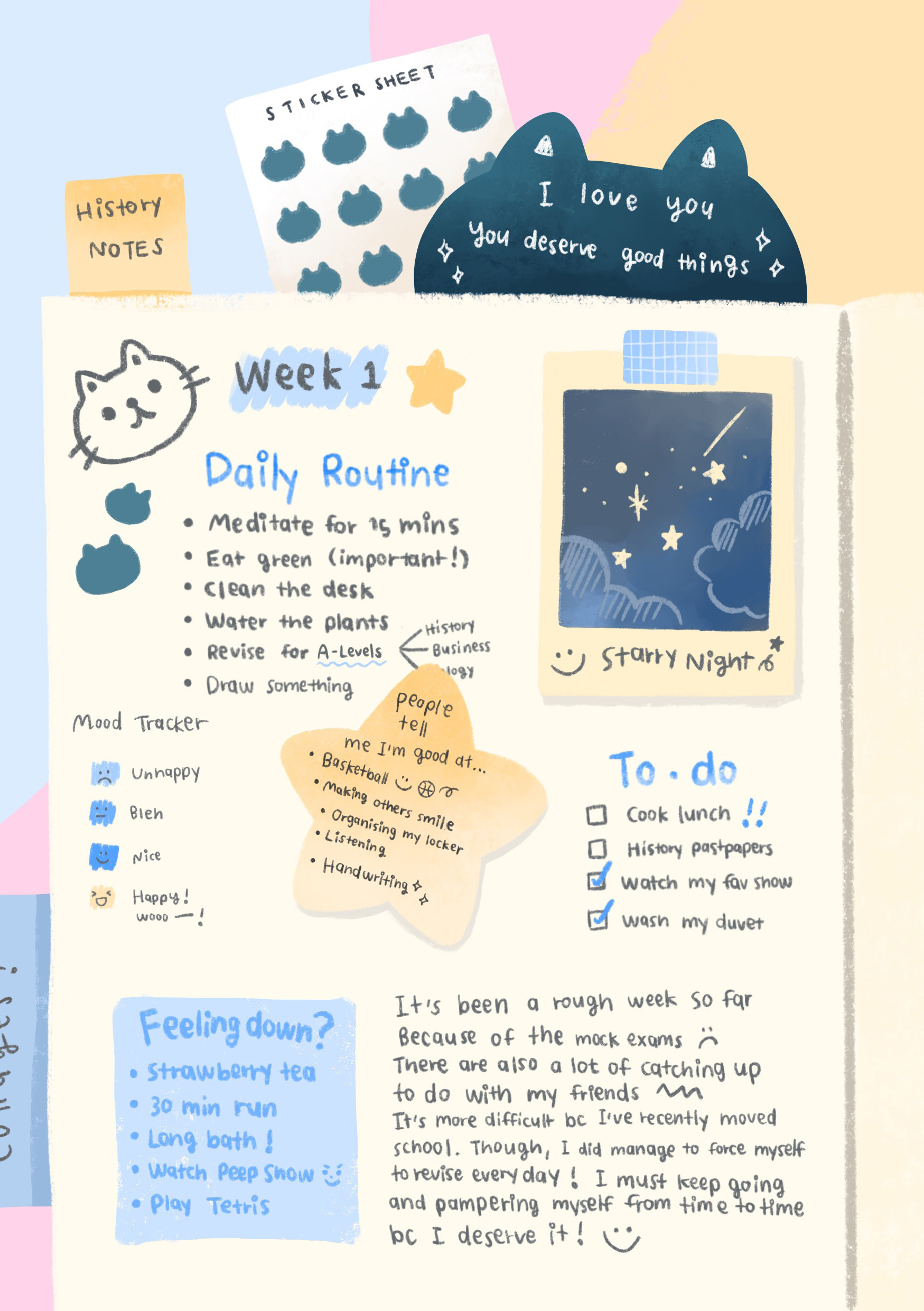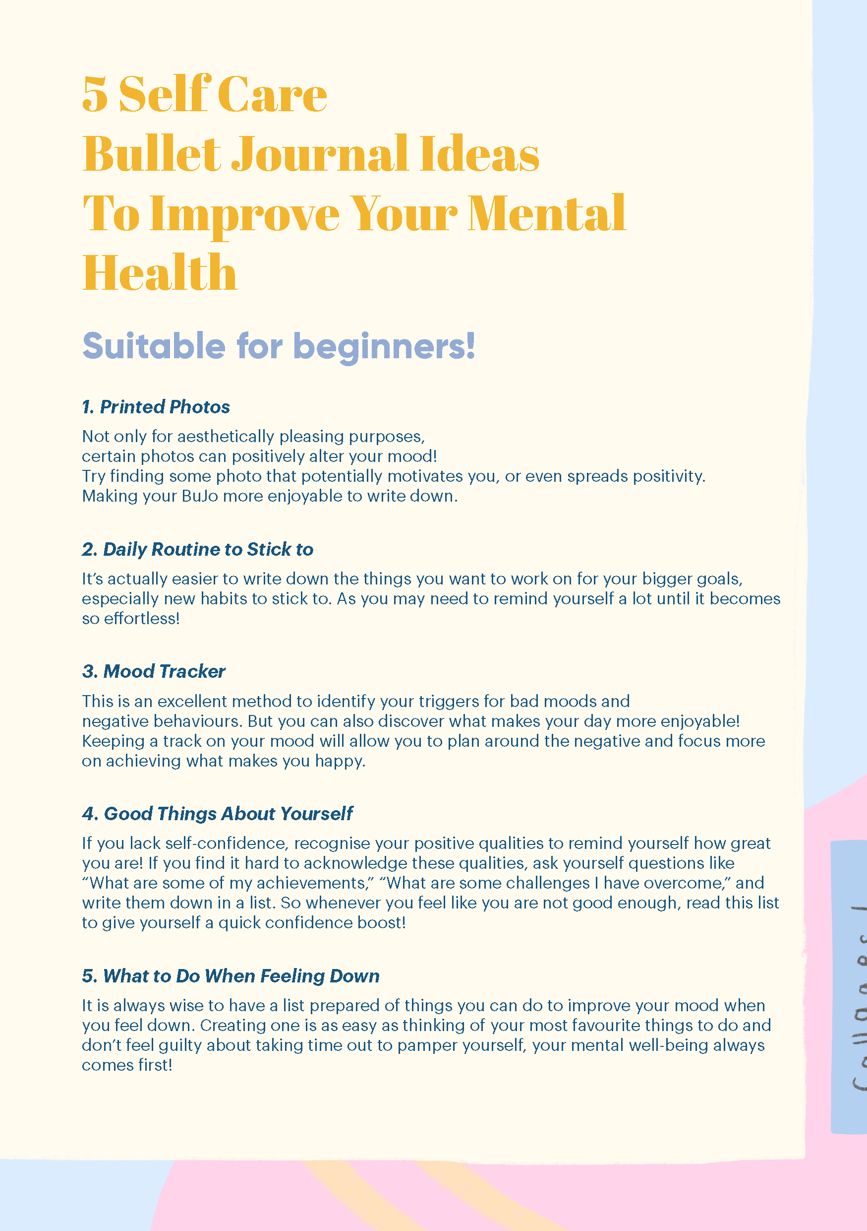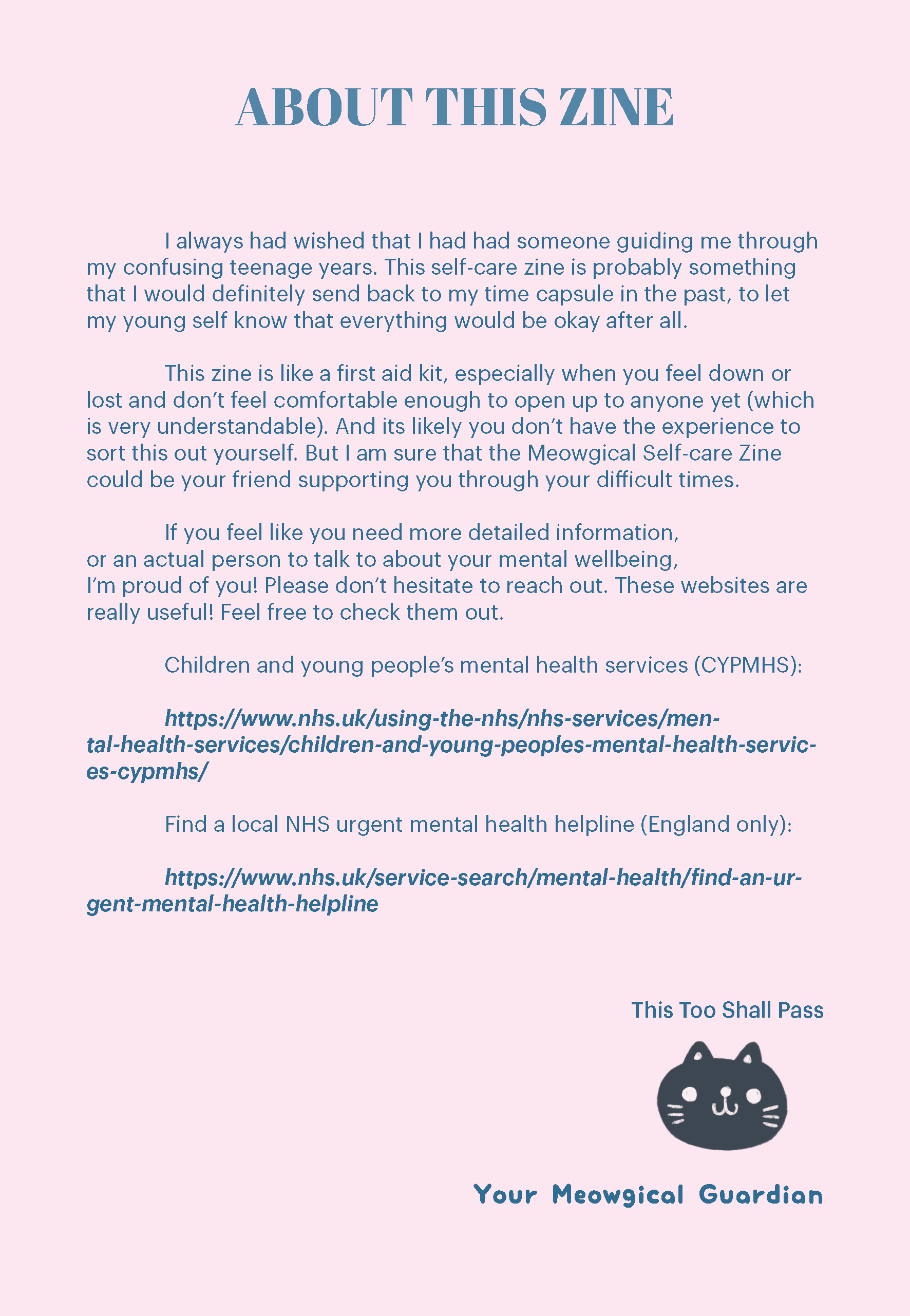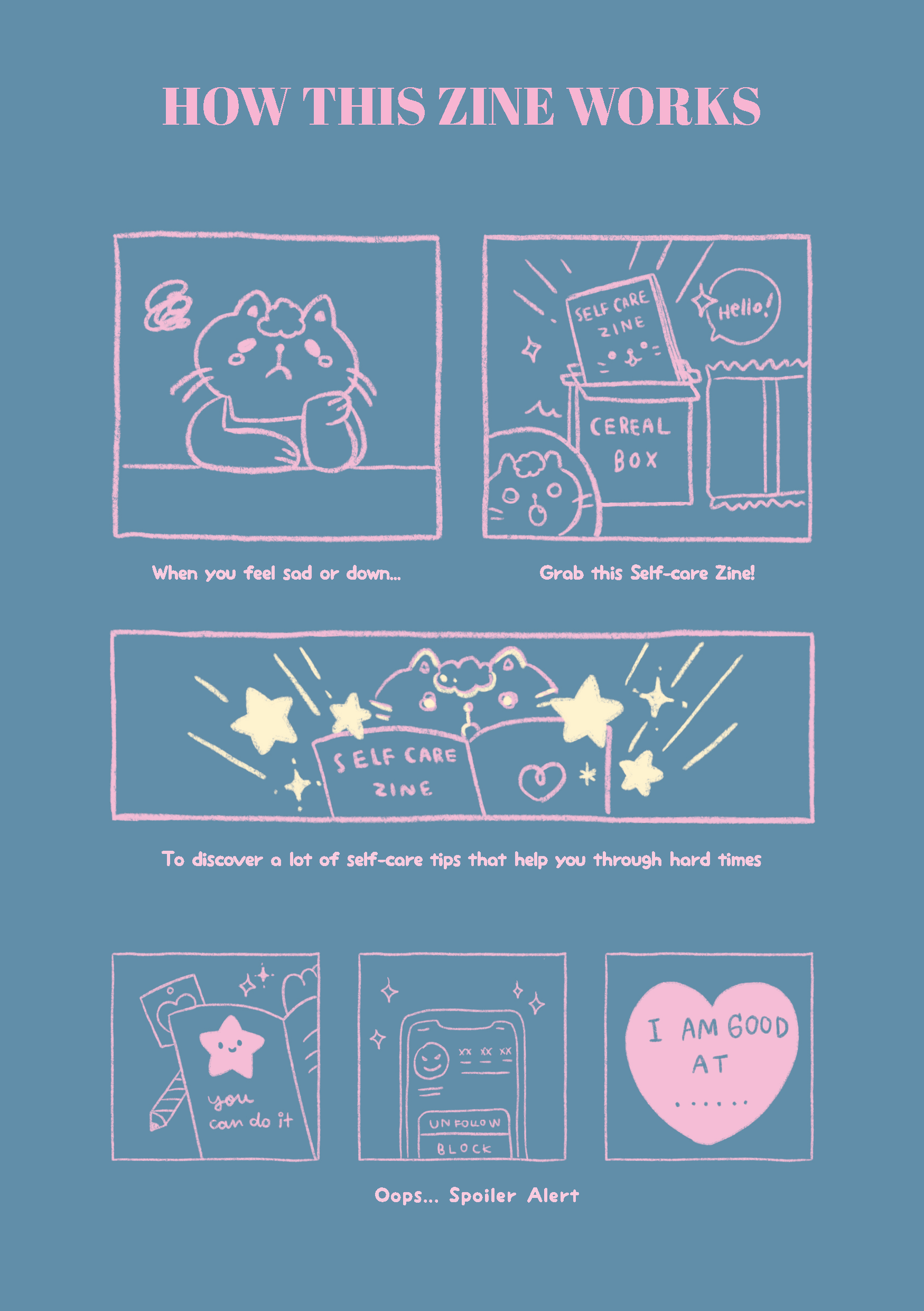 Apart from designing the cereal box, here is a zine that comes with it. I decided to come up with a self-care zine that promotes mental well-being in young people.